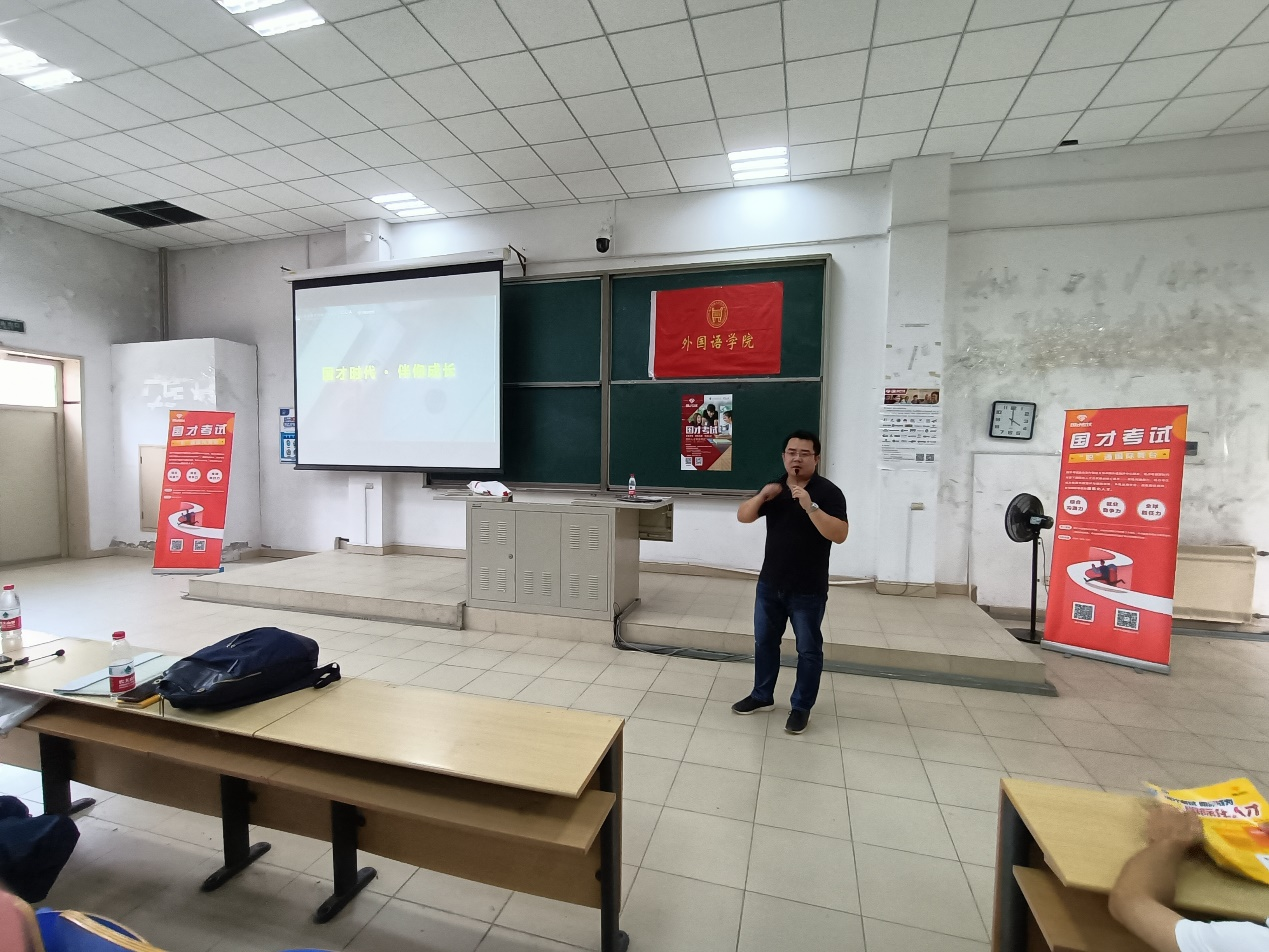 为推动外国语学院学风建设,为学校营造良好的英语学习氛围。外国语学院于9月15日下午15:00,在8教108举办了“外研社·国际人才英语考试”专题讲座。此次讲座我们特邀到了国才考试专题讲师张龙主讲。外国语学院教师,19、20级全体在校生以及新2