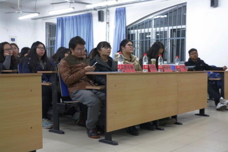自由提问环节,同学们就考试流程,备考阶段所需的准备工作、考试做题具体技巧等方面提出自己的疑问。各位学姐学长们也做了详细的讲解和说明。同时他们也鼓励同学们在备考时一定要放平心态,充满信心,合理的安排时间并预祝大家在专四考试中取得优异成绩。
