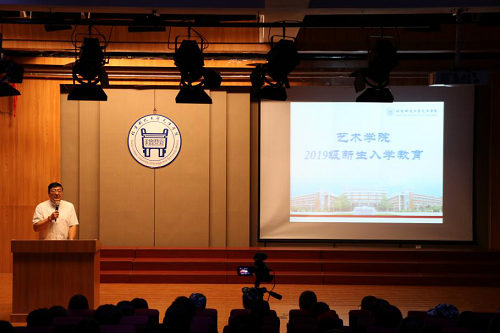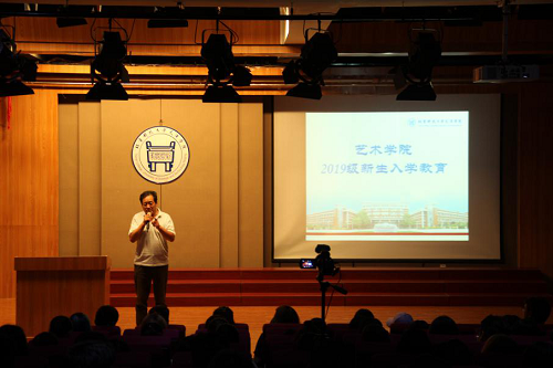胡宝嘉院长介绍了艺术学院的基本情况,希望2019级新生“学知识、学做人、学做事”,度过充实美好的大学生活。