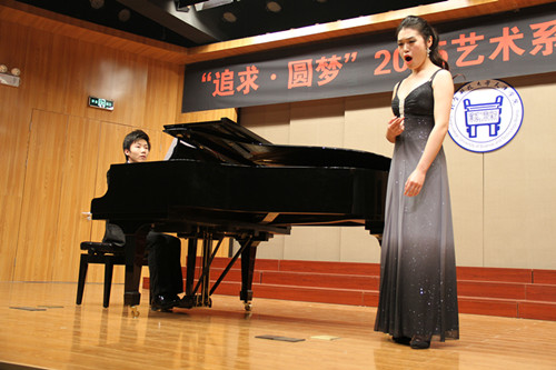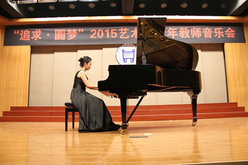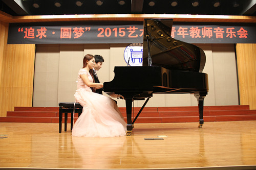 音乐会以“追求·圆梦”为主题,展示了艺术系青年教师积极向上、拼搏进取的精神风貌。音乐会以由青年教师陈倩担任指挥,院学生艺术团民乐团演奏的民族管弦乐合奏《赛马》开场,共有11个节目,涵盖民族管弦乐合奏、合唱、美声独唱、民族声乐独唱、钢琴独奏、钢琴四手联弹、手风琴独奏、古筝独奏等多个类型,展示出了艺术系教师精湛的专业水平和综合全面的个人能力。演出在由青年教师范璟玉担任指挥,院学生艺术团合唱团演唱的大合唱《Hallelujah》中结束。音乐会获得了全院师生的广泛好评。系主任胡建华教授、艺术教育中心主任林碧芸与各演职人员合影留念,并鼓励教师继续努力提高专业水平和加强个人修养,争取再创佳绩,为艺术系赢得更多的荣誉,为学生树立良好的榜样。
