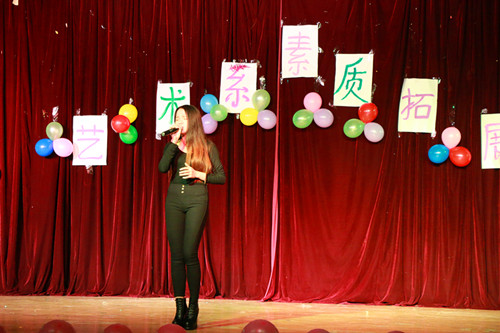 在几项游戏过后,进行了一个调整迎接下面的比赛,艺术系张钤阳、秦骅等同学的深情演唱将整个活动气氛推向了高潮。