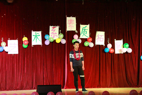 本次素质拓展活动以小组为单位开展活动,共设置了“气球对对碰” “坐地起身” “抢板凳” “衔纸杯传水” “瞎子背瘸子” “趣味接力”六个非常具有创意的比赛项目。活动过程也充满了欢声笑语,处处可以感到团队合作的力量。在艺术系15级学生周俊良和陈雪精彩的开场白后,本次活动正式拉开帷幕。