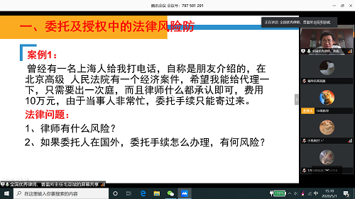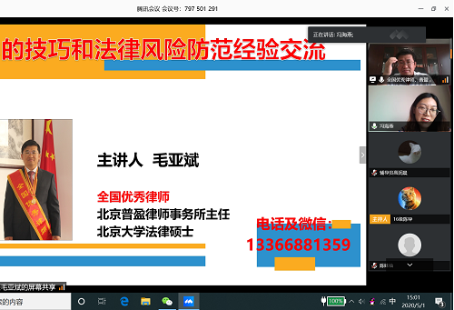 5月1日下午,全国优秀律师、北京普盈律师事务所毛亚斌主任为我系师生做了“诉讼技巧与诉讼法律风险防控”专题讲座,法律系主任朱京安教授、党总支书记冯海燕、专职教师和辅导员以及各年级学生,共计780余人参加本次在线讲座活动,讲座由党总支书记冯海燕主持。