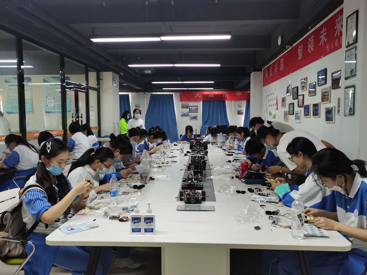 劳动美育实践教育成果、无人系统劳动实践成果、新材料能源实验室成果、学生创新创业成果和学生学农劳动成果。为了让学生在活动中充分体验学习、创造、动手、动脑的兴趣,学院还组织天津中学师生参加了中药香囊制作生产工艺流程体验、护理劳动体验、无人系统劳动实践体验、农事体验-蔬菜种植、玉米采收、整地做畦等劳动体验课,让学生在亲身实践中体会劳动美,丰收美。