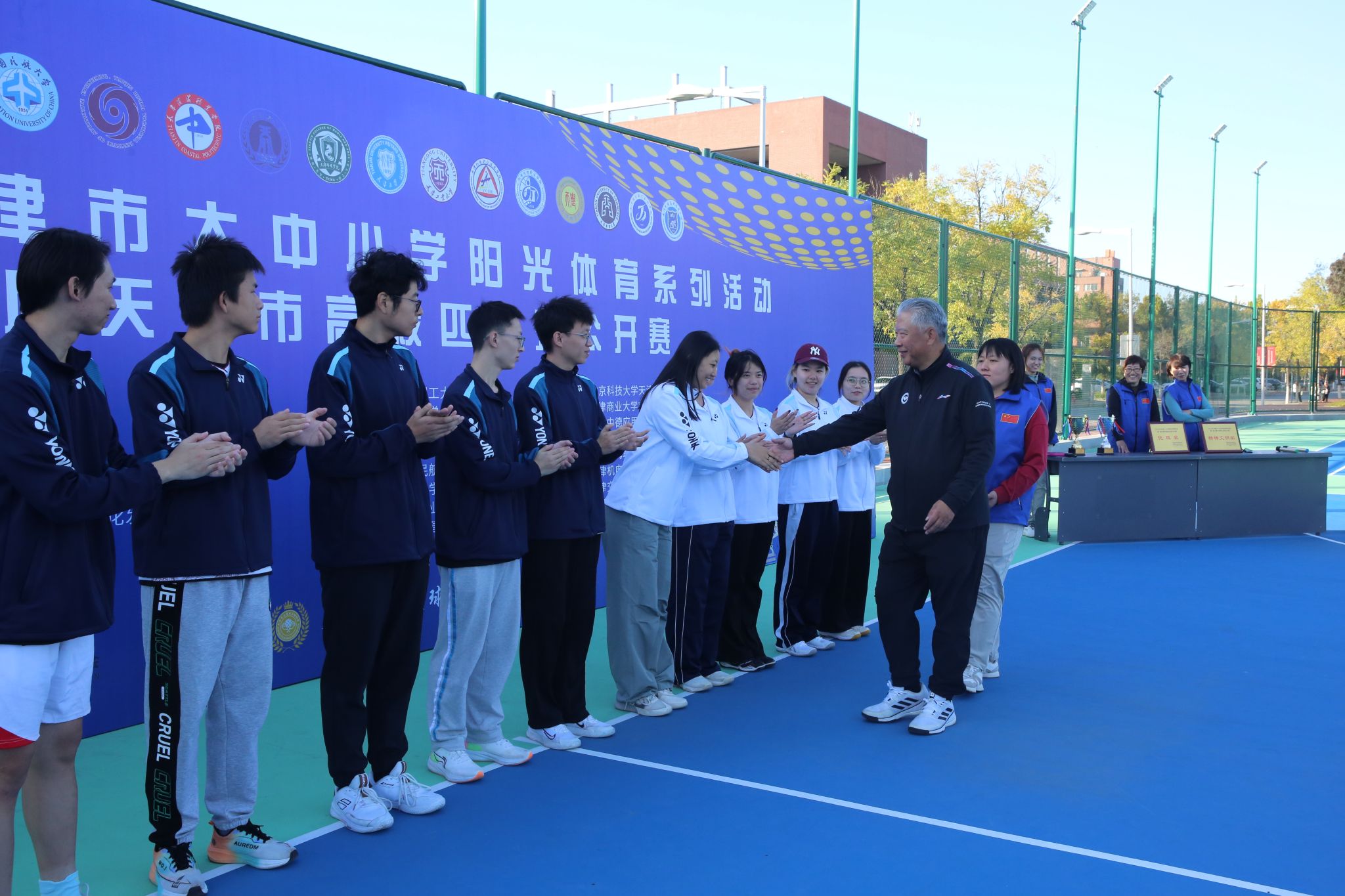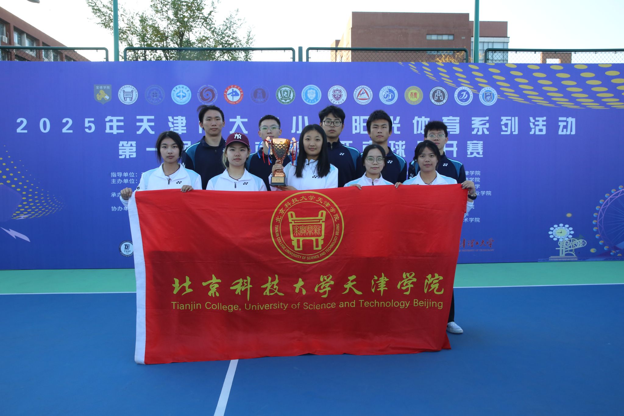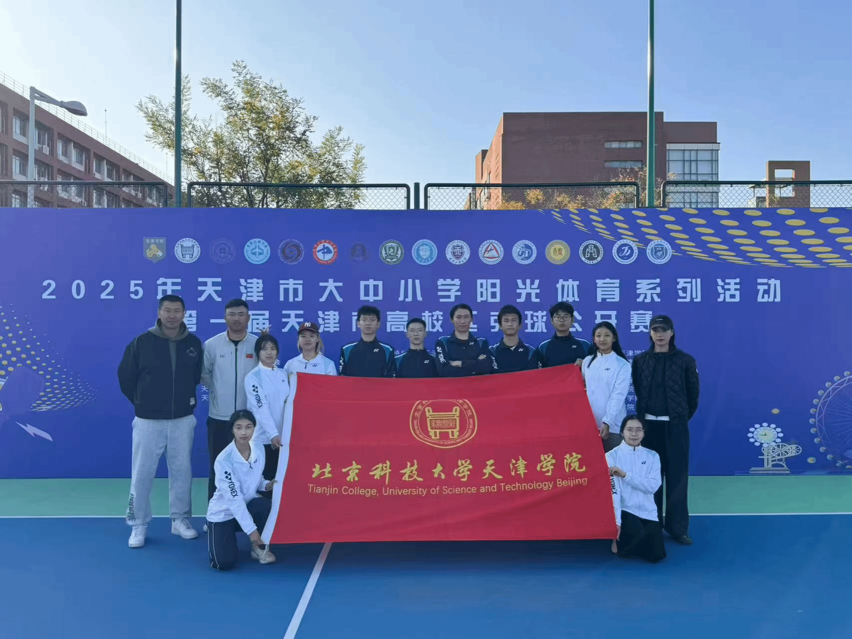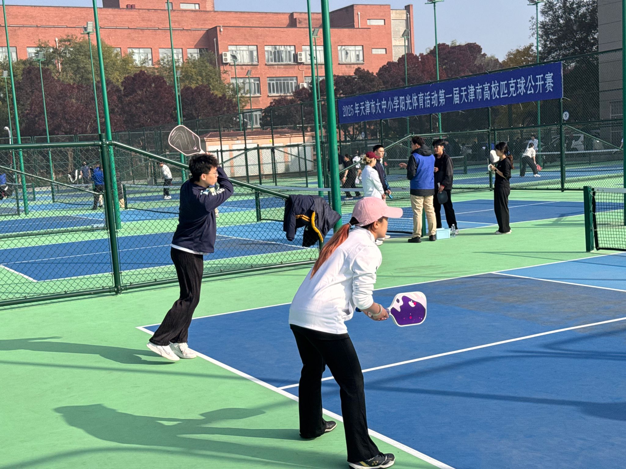 2025年11月1日,由天津市教育委员会、天津市学生体育联合会和天津市匹克球运动协会共同举办的2025年第一届天津市高校匹克球公开赛在天津理工大学匹克球场激烈开打,本次赛事吸引了全市17所高校,共计200余名运动员、教练员和领队踊跃参与。新2 由体育部赵文男、杨永康、程旸三位老师任教练员和10名球员组队参赛,经过激烈角逐,新2 匹克球队获得天津市高校团体第三名(季军)。