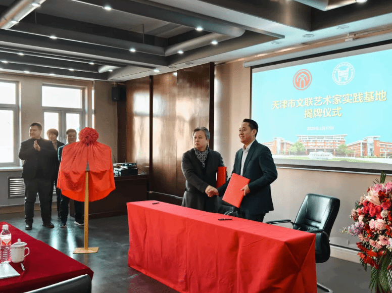 在热烈的掌声中,杨健君与张永锋代表双方签署了共建协议,标志着天津市文联艺术家实践基地正式落户新2