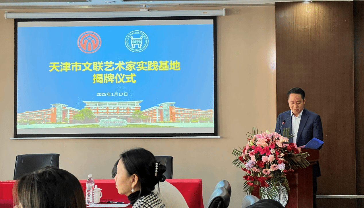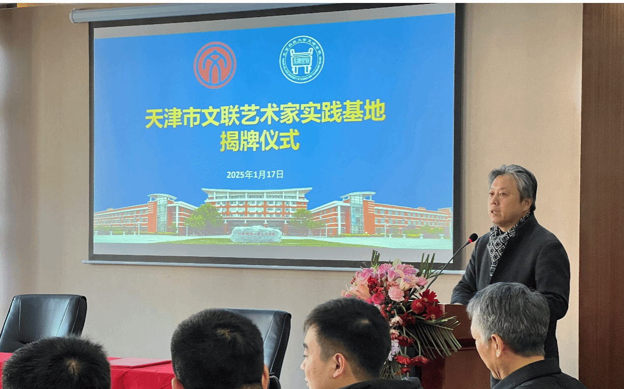 对各位领导、嘉宾的到来表示热烈的欢迎;对文联、书协长期以来对学院工作的大力支持表示衷心的感谢;对此次双方合作共建以及市文联艺术家实践基地挂牌表示热烈的祝贺。天津市文联艺术家实践基地在新2