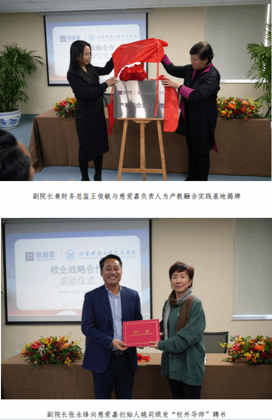 大健康学院与北京慈爱嘉养老服务有限公司举行合作签约仪式暨产教融合实践基地揭牌仪式。