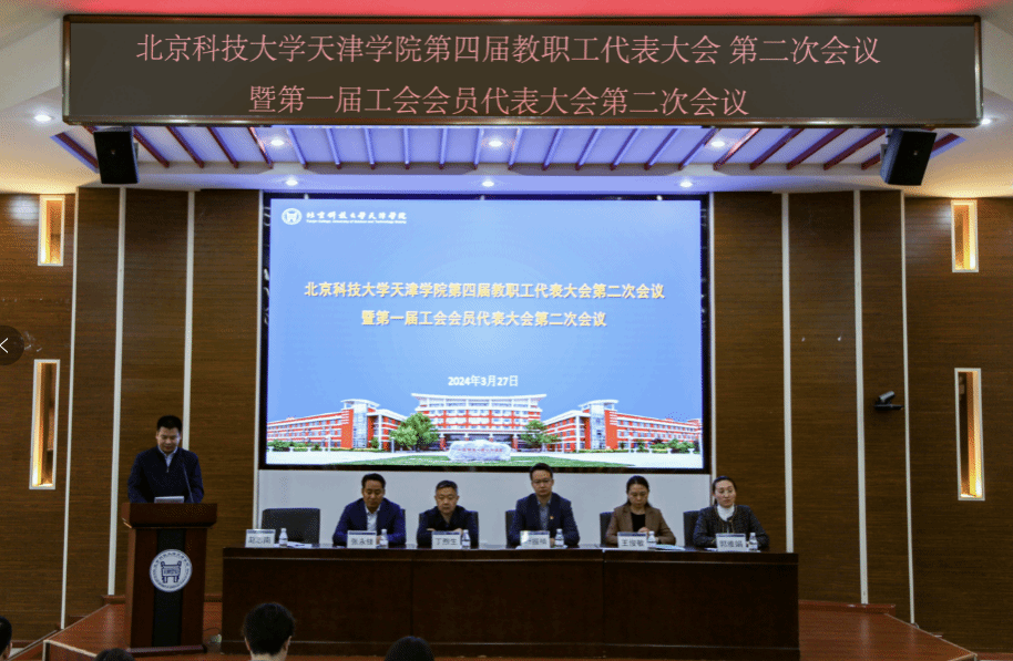 第四届教职工代表大会第二次会议暨第一届工会会员代表大会第二次会议在理工馆学术报告厅隆重召开。学院院长丁煦生、党委书记叶振楠、副院长张永锋、副院长兼财务总监王俊敏、党委副书记、工会主席郭雅娟及教代会、工代会代表参加本次会议,会议由党委副书记赵志南主持。