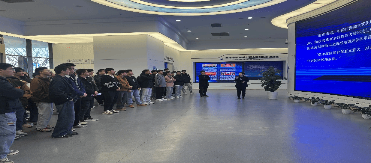 学生首先参观了京津中关村科技城展示中心,工作人员介绍了宝坻区区域发展和招商引资、招才引智政策,让同学们感受宝坻的发展速度和城市魅力;同时介绍了中关村科技城的战略定位、产业布局和发展前景,帮助同学们深入了解中关村科技城。