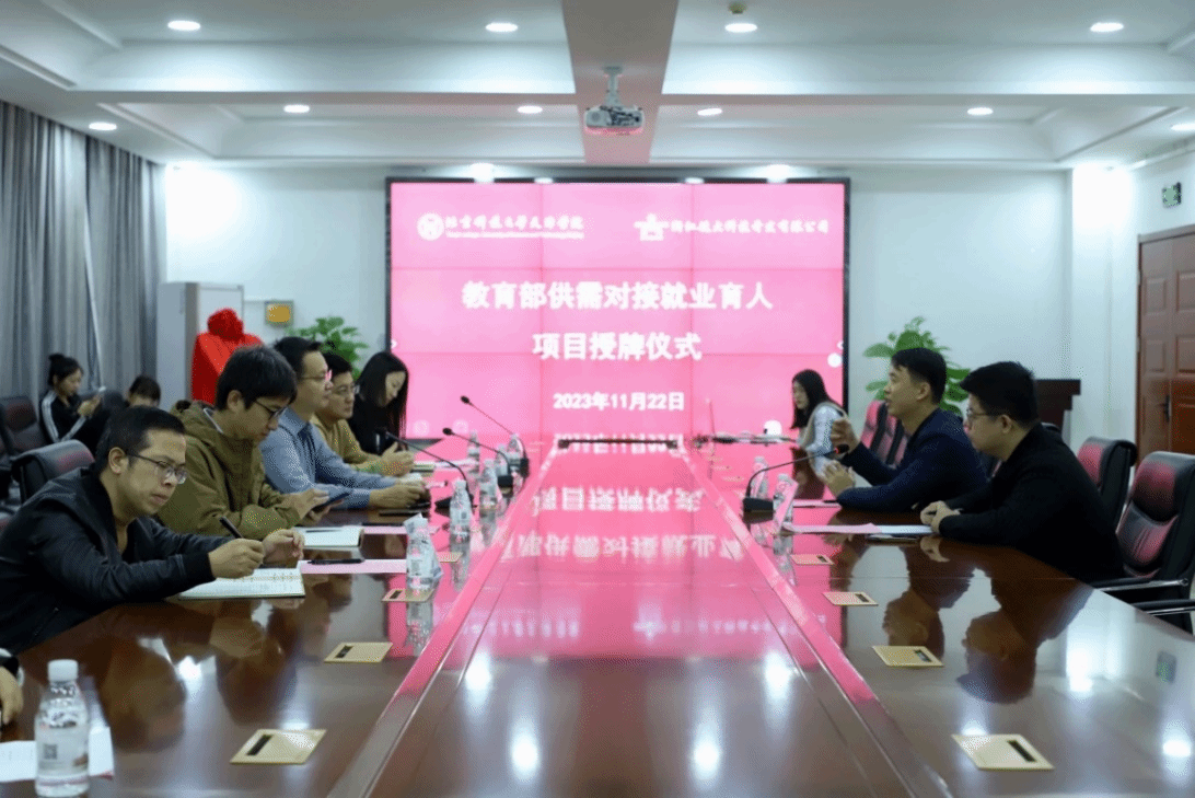 与浙江航大科技开发有限公司的“教育部供需对接就业育人项目”授牌仪式在行政楼300会议室隆重举行。浙江航大科技开发有限公司华北区总监刘冲、外联部经理陶家豪,学院党委书记叶振楠、招生就业处处长田勇、产学研办公室主任彭鹏、经济学院党总支书记胡洪强、经济学院副院长米岩等出席授牌仪式。