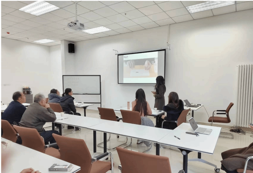 隋延力老师对BOPPPS教学模型进行了简要介绍;于静老师和米岩老师以“中国结制作”为导入,通过互动的方式展示教学方法;材料与环境学院的王雪飞老师以十分钟微课形式演示了BOPPPS教学模型,以“功能材料”课程中的“形状记忆合金特性”知识为例,展示了实验环节设计,介绍了参与式教学方法的具体应用;与会教师分别对微课效果进行了点评并谈了自己的感受,大家充分肯定了微课生动、紧凑、有效等突出亮点,讨论了如何在微课中挖掘专业理论深度、如何在教学中融入课程思政元素等;于静老师以庖丁解牛举例对BOPPPS教学模型进行了总结:“引入-目标-前测-参与式学习-后测-总结”。