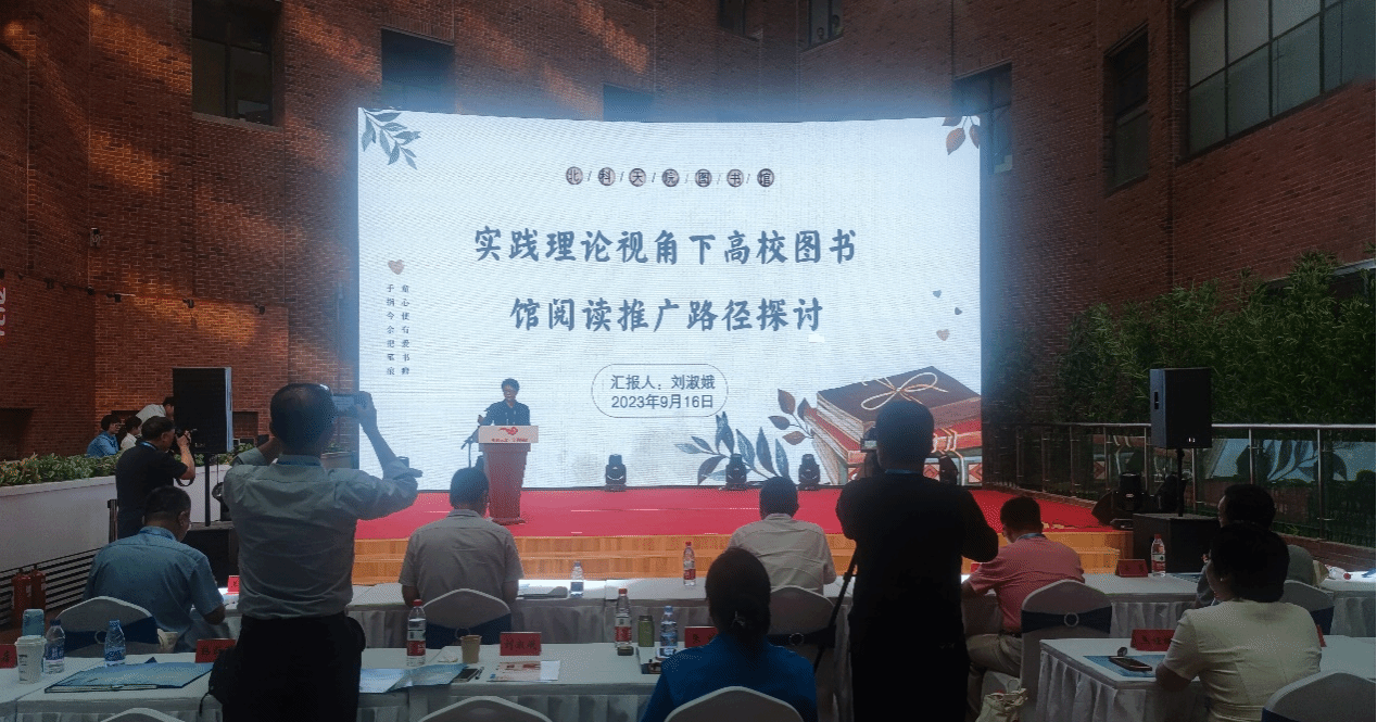2023年9月16日,由天津市委宣传部指导,天津市全民阅读活动办公室主办,河西区委宣传部、中文在线、问津书院承办的第九届阅读推广天津交流会在天津市河西区新梅江文体中心举行。学院图书馆馆长刘淑娥作为天津市高校唯一代表出席了本次交流会,并在大会交流环节作了关于《实践理论视角下高校图书馆阅读推广路径探讨》的主旨发言。