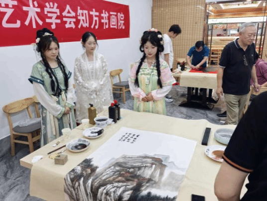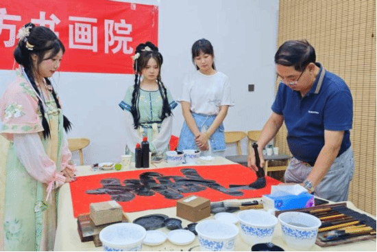 传统文化体验馆温情上演。为深入推进新时代美育工作,传承中华优秀传统文化,2025年7月1日下午2:00天津市艺术学会知方书画院的艺术家们莅临新2
