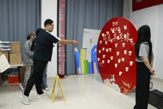 现场工会精心准备了“好运乒乓球”小游戏,游戏中老师们互相指导技巧,收获满满。当天生日的老师为大家抽奖,中奖教师惊喜欢呼举手示意,拿到“秋日暖心礼”。英文猜歌词游戏大家踊跃报名,团队紧密合作,观众为每支队伍加油鼓劲,现场欢乐氛围拉满。