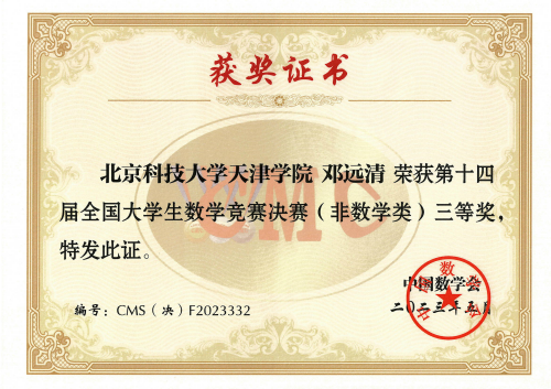由中国数学会主办的第十四届全国大学生数学竞赛决赛于2023年5月27日在广东工业大学举行。本次竞赛全国共有32个赛区1024所高校231769人报名参加初赛,经过选拔,共有444人进入非数学专业组决赛。新22020级通信工程专...