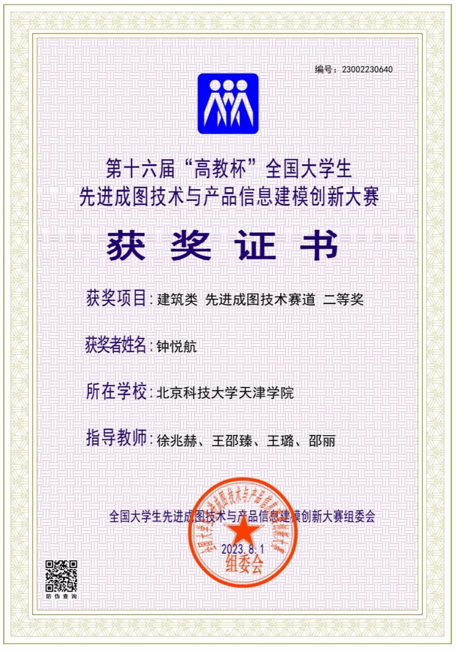 近日,第十六届“高教杯”全国大学生先进成图技术与产品信息建模创新大赛在重庆落下帷幕。新2学生钟悦航(城市建设新2 ,土木智2101班)荣获建筑类先进成图技术赛道二等奖,指导教师徐兆赫、王邵臻、王璐、邵丽。 ...