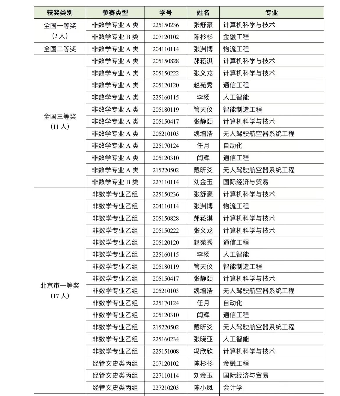 近日,第十五届全国大学生数学竞赛初赛获奖名单公布,新2学生在本届竞赛中表现出色,取得了优异成绩。荣获北京市一等奖17人,二等奖28人,三等奖32人;其中全国一等奖2人,全国二等奖1人,全国三等奖11人。 本次竞赛...