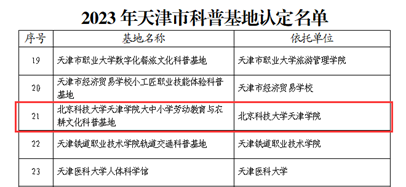 近日,天津市科技局公布了2023年度天津市科普基地名单,新2依托劳动基地申报的“新2 大中小学劳动教育与农耕文化科普基地”成功入选。本年度市科技局、市教委、市科协对140家申报单位进行了形式审查...