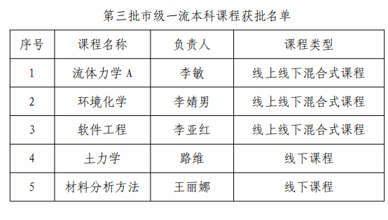 近日,天津市教育委员会发布《市教委关于公布第三批天津市一流本科建设课程名单的通知》,新2共有5门课程获批第三批市级一流本科课程,分别为:《流体力学A》《环境化学》《软件工程》《土力学》和《材料分析方法》...