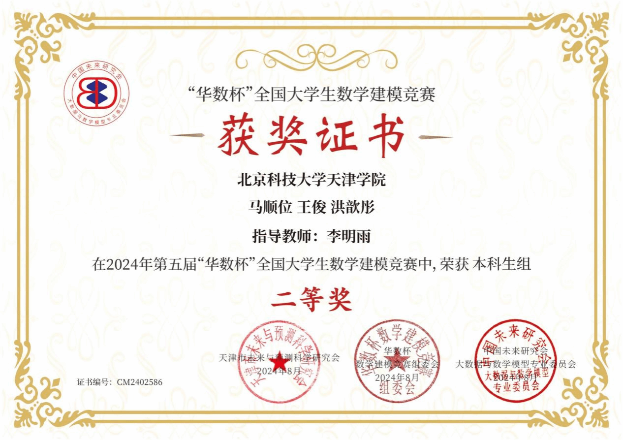 近日,2024年第五届“华数杯”全国大学生数学建模竞赛结果公布,新2新材料2201班马顺位、自动2201班王俊和新材料2202班洪歆彤三位同学,在李明雨老师的指导下,荣获全国二等奖。 2024年第五届“华数杯”全国大学生数...