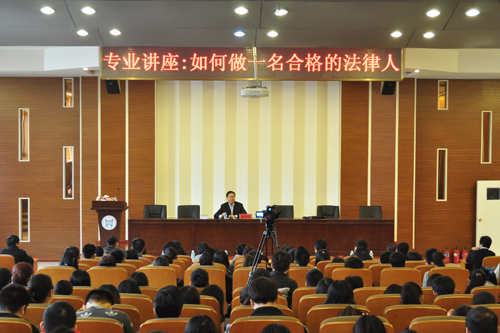 2015年11月15日下午14时,法律专业知识讲座在新2理工图书馆学术报告厅隆重举行。本次讲座邀请到中华人民共和国司法部法制司副司长韩秀桃就有关“如何做一名合格的法律人”为主题做演讲。院党委副书记叶振楠、法律系...