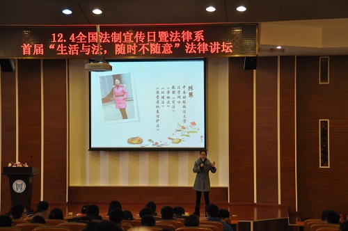 为弘扬宪法精神,加深同学们对法律知识的了解,体会法律的重要性,法律系分团委、学生会以“全国法制宣传日”为契机,于12月4日下午15:30在理工馆学术报告厅举办的首届“生活与法,随时不随意”法律讲坛。 活动开始,...