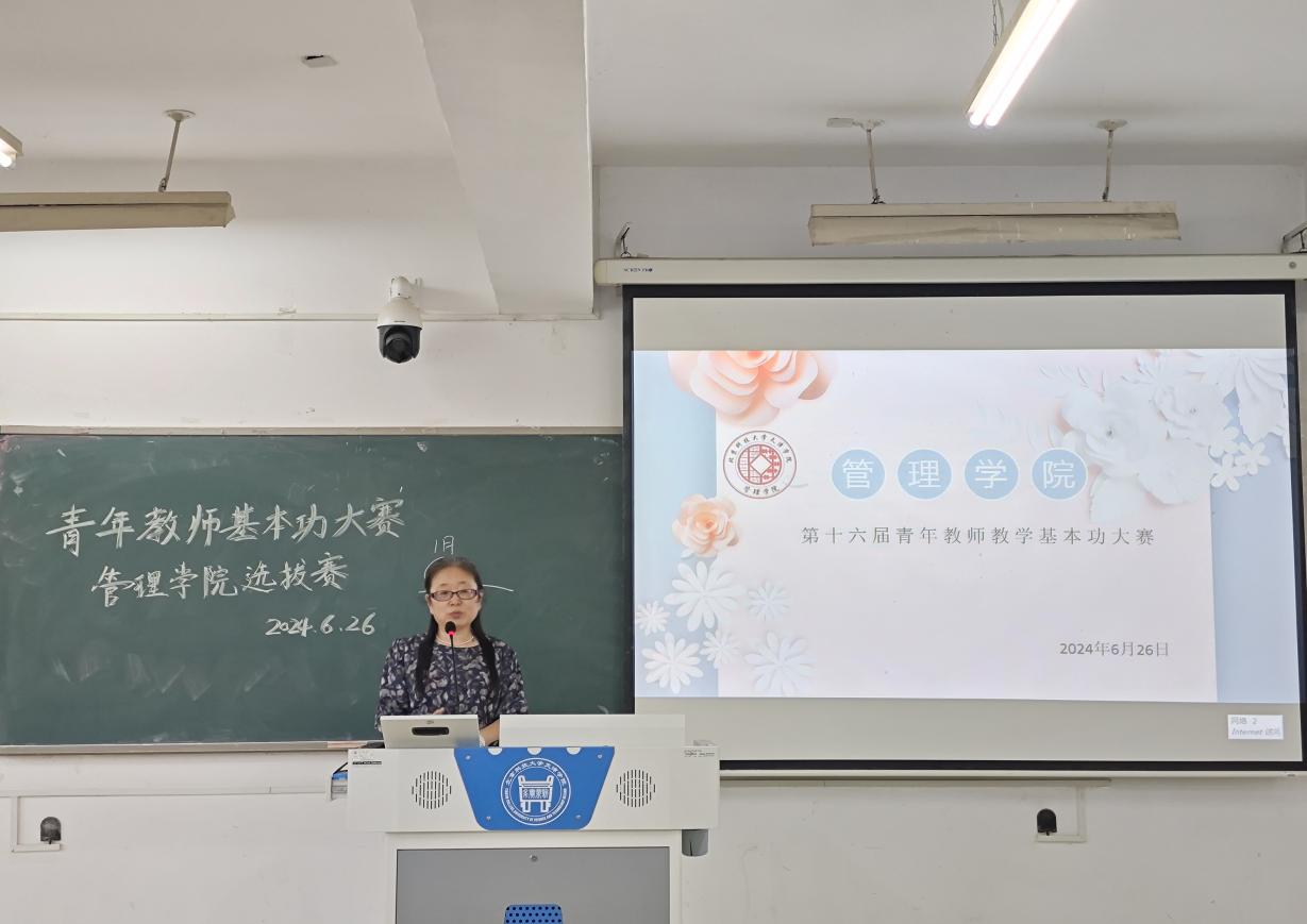 为贯彻落实新时代全国高等学校本科教育工作会议精神,引领广大青年教师潜心教书育人,不断转变教育教学理念,更新教学方法和教学手段,提升教学能力和水平,管理新2 于2024年6月26日下午14点在8教102举办了第十六届青...