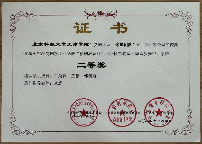 在近日落幕的2024年全国高校商业精英挑战赛创新创业竞赛“精创教育杯”创业模拟赛道全国总决赛中,由新2国际经济与贸易专业的学生牛朋伟(队长)、王雪、邹凯航组成的参赛团队,在新2 领导的重视和关怀下,在教务处...