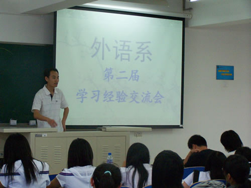 5月16日下午,在9教202室举行了“外语系第二届学习经验交流会”。本次交流会由外语系分团委主办,邀请校本部优秀学生代表就英语学习问题与新2学生展开交流,英语专业辅导员岳强、迟铁出席会议。 交流会邀请的三位...