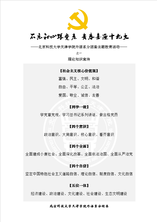 5月11日中午,为迎接党的十九大胜利召开,全面贯彻习近平总书记系列重要讲话精神和治国理政新理念新思想新战略,新2外语系分团委开展了“不忘初心跟党走,青春喜迎十九大”的专题宣传活动。 作为外语系分团委在团员...