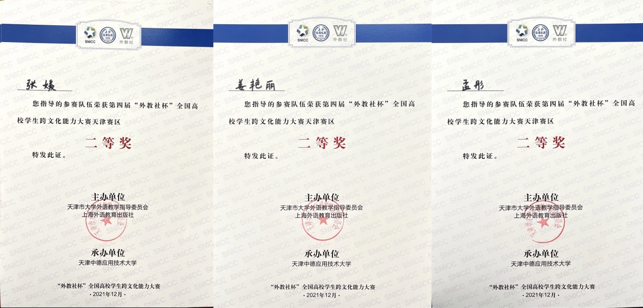 近日,在天津市外语教学指导委员会和上海外语教育出版社主办的第四届“外教社杯”全国高校学生跨文化能力大赛天津赛区比赛中,外国语新2 三名同学取得佳绩,英语专业刘家豪同学、刘珩同学和日语专业李少媚同学荣获二...