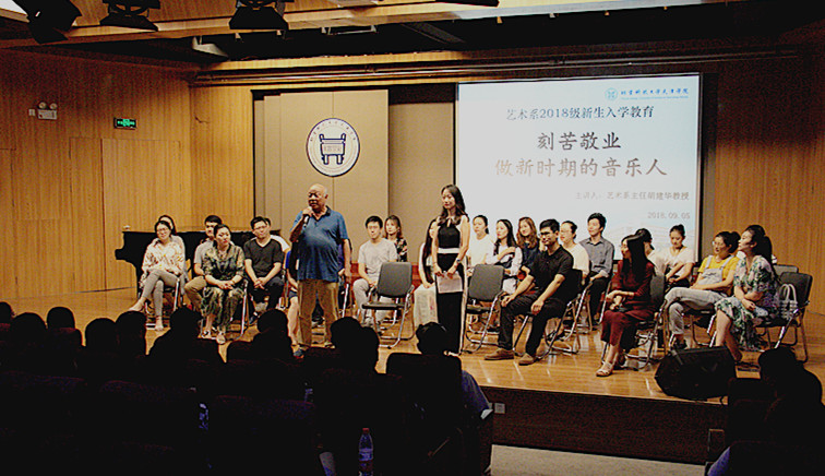 2018年9月5日19:00艺术系2018级新生入学教育在弘艺音乐厅成功举办。艺术系主任胡建华,副主任林碧芸以及全体教师,辅导员出席了会议,艺术系2018级全体学生参加了本次活动。 本次入学教育以“刻苦敬业,做新时期的...