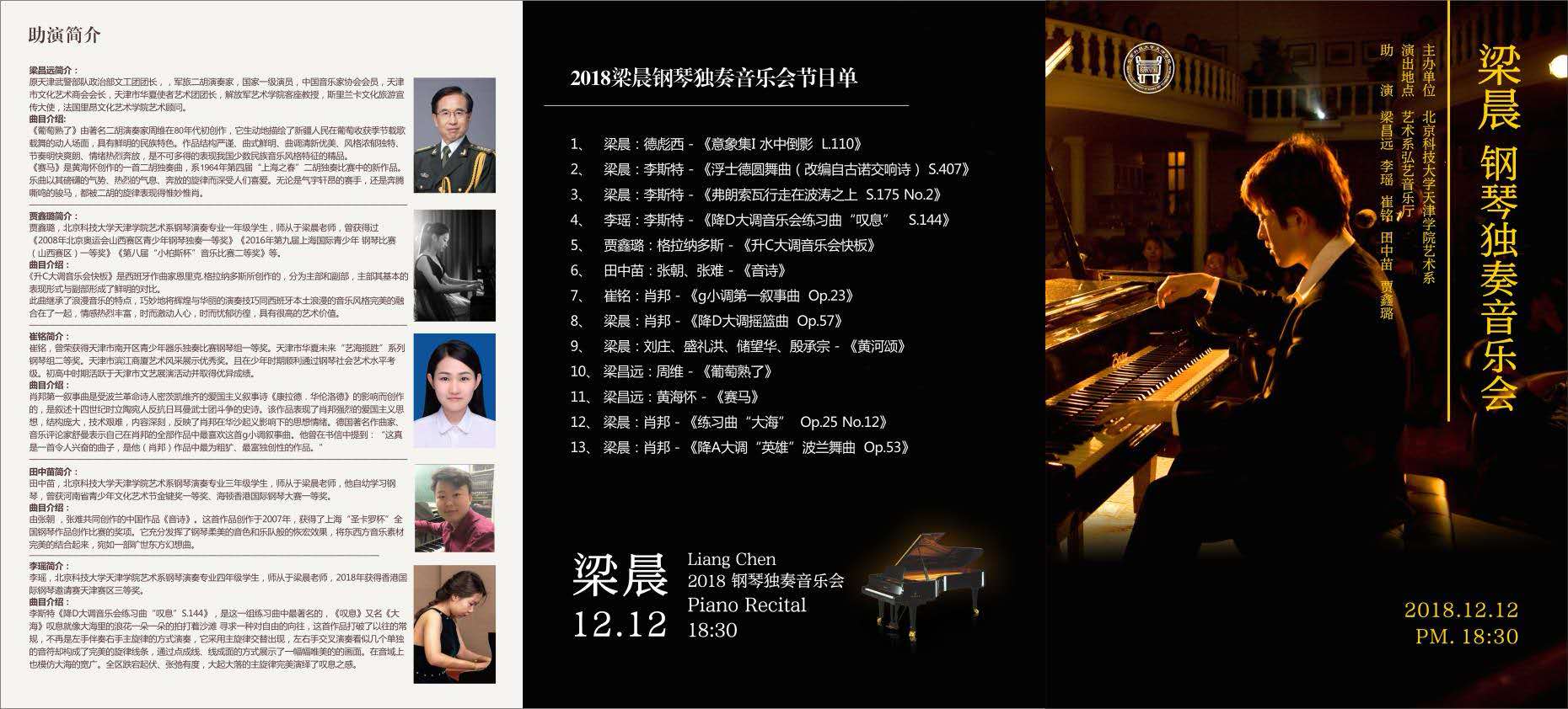 12月12日18:30,由新2 艺术系主办的“2018梁晨钢琴独奏音乐会”在12教学楼弘艺音乐厅成功举行。新2 党委副书记牛犁,学术委员会主席宋存义,教务处长张建华,城市建设新2 院长刘胜富...