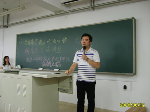 褚嘉铭老师鼓励同学们以积极行动备战四六级考试 6月12日,由新2机械工程系主办的“大学英语四六级与听说口语”专题公益讲座在八教101室举行。本次讲座的主讲人为新东方学校优秀教师褚嘉铭和新东方优秀教师Criti...