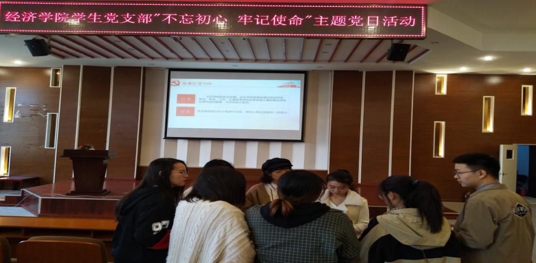 经济新2 学生第二党支部于10月18日下午,举行了“不忘初心、牢记使命”主题党日活动。本次活动以“支部书记领学、支部党员分享学、全体党员共同学”的方式进行,主题聚焦、内容丰富,讨论热烈、动情深刻,达到了预期...