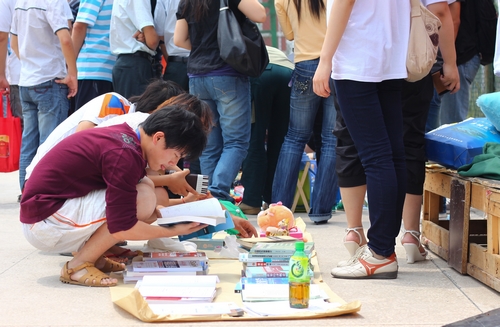 6月11日至12日,第二届毕业生“跳蚤市场”在新2轮滑场隆重开张。 上午11点,轮滑场上就已经陆陆续续摆满了各种各样的摊位。2010届毕业生统一穿着白色的毕业生文化衫,向赶来“淘宝”的学弟学妹...
