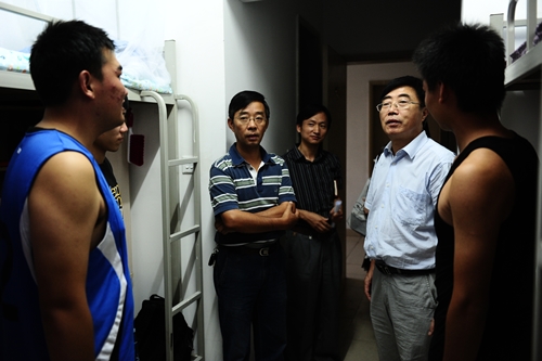 9月3日晚,院长郭景文、党委书记王斌、副院长曹连东、财务总监王合军、党委副书记盛佳伟在相关职能部门负责人的陪同下走访了新生宿舍,了解他们入学以来的生活、学习情况。 在新生宿舍,院领导与...