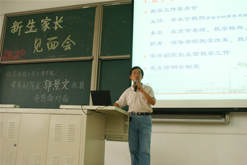 9月20日下午,在九教108室召开了新生家长见面会,新2常务副院长郭景文教授向08级新生家长介绍新2 情况并回答问题。新生家长热情高涨,能容纳350余人的教室座无虚席。 会上,郭院长介绍了新2基本情况,对办学指导...