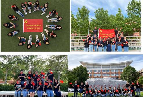 支部成员首先在西操场围党旗而坐,完成了党员在党故事分享、畅想未来、学党史、沐党恩、跟党走的交流讨论。然后依次来到事先拟定的教学楼、行政楼和操场三个地点唱响红歌。一曲慷慨激昂的《没有共产党就没有新中国》不仅唱出了大家对革命先烈、对党和国家的敬意和深厚情感,更唱出了我们跟党走的信心和奋勇前进的动力。《我和我的祖国》优美的旋律则再次带我们走进一个个生动的默默付出、无私奉献、顾全大局的人物故事,激励着新时代的红色追梦人。