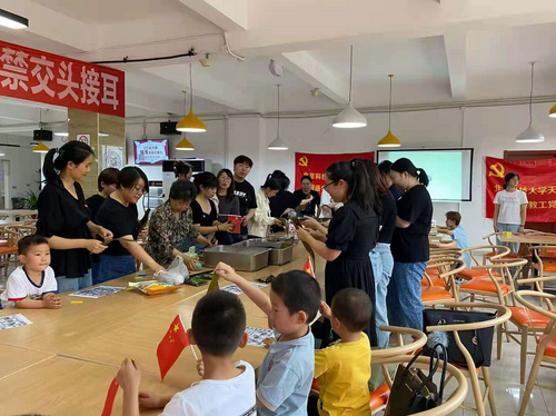 6月11日下午17:30,外国语学院教工党支部和学生党支部在二食堂教工餐厅联合开展“浓浓粽意情 拳拳爱国心 学党史惜粮 党群共成长”活动。全体党员及群众家属参与。学生党支部书记李萌致开幕词,学生党员韩慧同志主持本次活动。