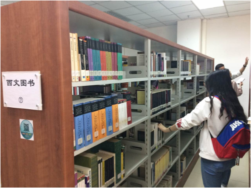 图书资源,利用图书馆的西文书籍巩固外语系学生们的专业知识水平。同时,鼓励同学们积极借阅图书来丰富知识,完善自己。活动开始学生们有序的进入社科图书馆内,走进陈列整齐的西文书库,在两名大三学生的介绍下,了解西文书库中各类图书的摆放位置以及书籍的分类情况,感受着字里行间的世界,最后,每位学生根据自己的兴趣爱好选择了外文书籍并借阅。