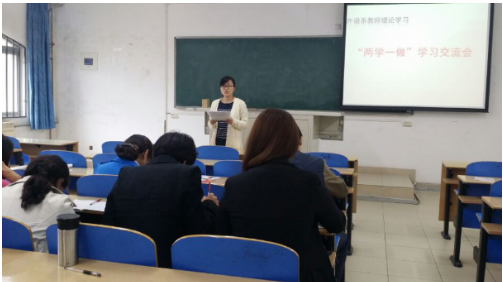 外语系教职工在9教107召开“两学一做”学习交流会,本次会议由外语系党总支书记何红升同志主持。
