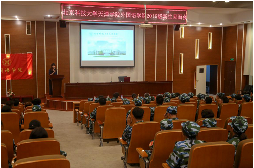 外国语学院2019级新生见面会在理工馆学术报告厅召开。外国语学院院长张国敬、英语教学研究中心主任梁素芹、党总支书记张莉、党总支副书记张添善、英专教研室主任张媛、分团委书记李萌以及教学秘书耿睿出席本次新生见面会。本次新生见面会由2019级辅导员孙雨馨主持。