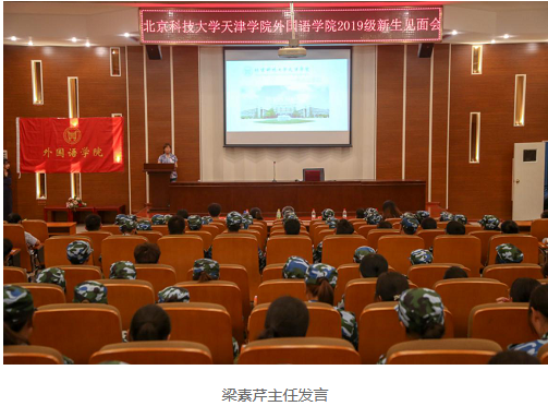 张国敬院长在大会讲话中表示了对2019级新生的热烈欢迎以及对他们成长的殷切希望。同时希望同学们规划好大学期间目标,脚踏实地,树立远大理想。梁素芹主任从宏观到细微、全方位地向新生们阐述了英语学习以及英文人才的重要性。张添善老师则对新生们在日后的学习、生活上提出了几点建议,希望他们能在新2