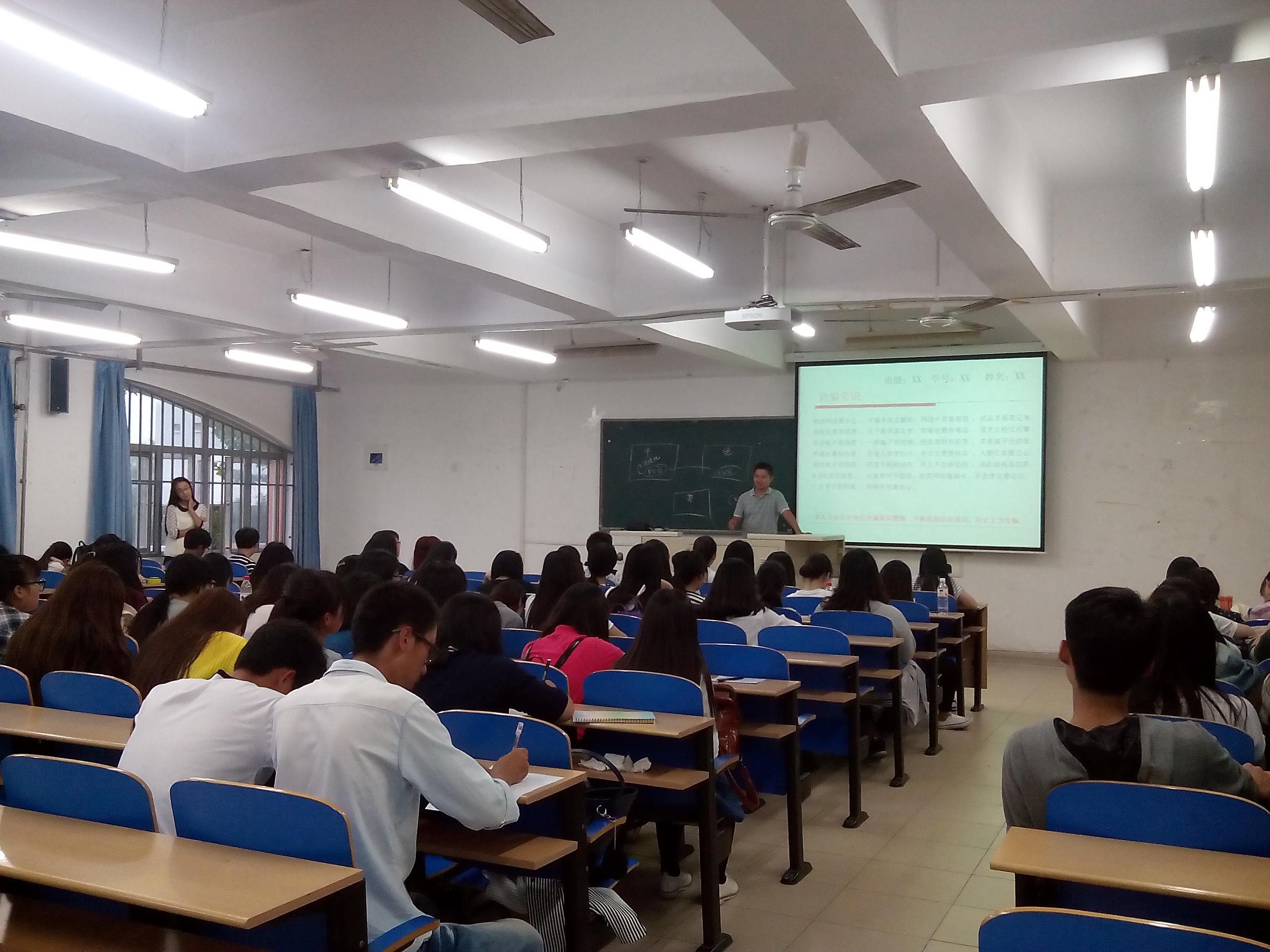 为了增强外语系学生对网络信息诈骗的防范意识,外语系于2015年9月22日下午在8教102召开全系安全教育大会。外语系党总支书记何红升、分团委书记王研及辅导员出席本次大会。