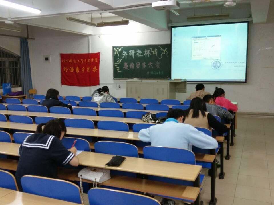 此次大赛不仅显示了学生对英语的热爱,同时也提高了自己的英语水平。伴着考试结束铃声的想起,本次“外研社杯”英语写作大赛圆满结束。
