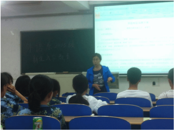 外语系2015级新生入学教育大会如期在8教101举行,外语系主任梁素芹、党总支书记何红升以及2015级新生辅导员参加了本次活动。