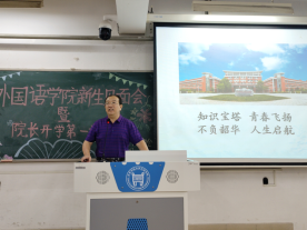 最后,滕院长带来开学第一课,并对2024级新生提出殷切希望:一是珍惜在校时间,把握机会,激发学习热情;二是顺应新时代变化,努力提高专业水平;三是充分挖掘自身潜能,加强文化修养,提高综合素质。他鼓励外院学子不忘初心梦想,锤炼意志品格,为成为兼具国际视野和家国情怀的新时代外语人而努力奋斗。