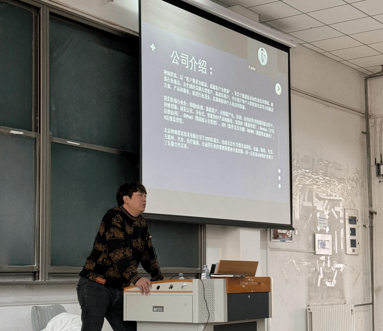 最后,北京神脑资讯技术有限公司宣讲人就公司简介、战略规划、人才培养及员工福利、岗位需求等方面展开了介绍,表明企业需求,明确就业岗位。并希望应聘者拥有吃苦耐劳的精神,牢固的专业知识和一定的社会实践经验,能尽快的把理论知识转化为社会实践能力。